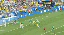第74分钟,哥伦比亚利用角球机会,米纳头球破门,哥伦比亚1-0领先。