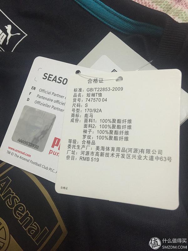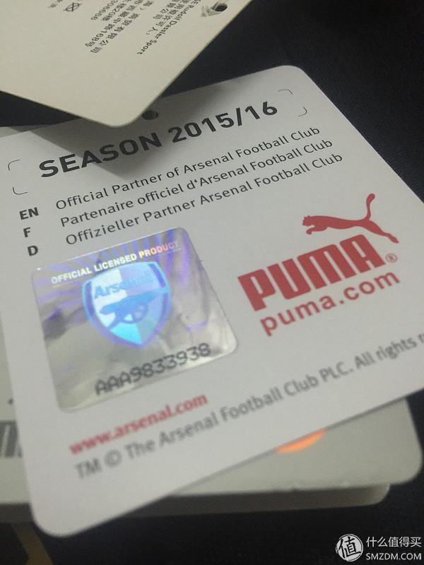 阿森纳LOGO镭射标签,估计防伪用。如从其他渠道购买球衣的注意鉴别了。