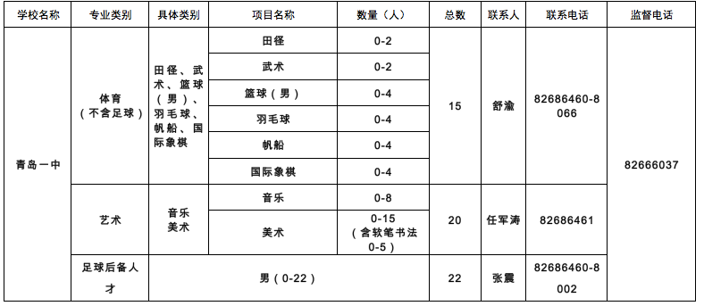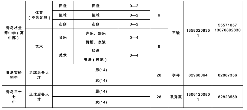 相关链接:2024年青岛市教育局直属学校体育艺术特长生和足球后备人才招生计划
