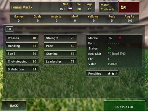 移动端的《足球经理》有两款,相比触摸版,移动版更侧重于手机玩家。该游戏更像是早期PC版的精简版本,可以说是手机平台最有深度的足球经理游戏。在游戏中,你可以组建自己的球队,训练年轻球员,开发各种的战术技巧。(PS:移动版更适合短期玩)
