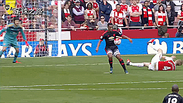 等待对方出脚停球的那一刻,果断出脚破坏。