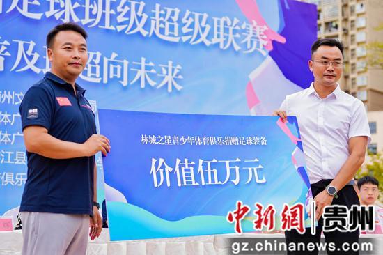活动现场,贵州省足球协会副主席陈懋、巴黎残奥会冠军杨洪、巴黎残奥会亚军杨光龙、村超足球民星代表董永恒受邀担任“班超”形象大使。林城之星体育俱乐部捐赠价值五万元的足球装备和医疗防护装备,助力校园足球赛事安全、有序开展。