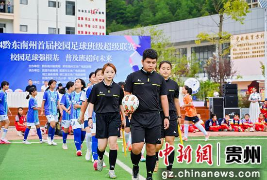 中新网贵州新闻10月1日电 (蒋照俊)贵州省黔东南苗族侗族自治州首届校园足球班级超级联赛(简称“班超”)启动仪式9月30日在凯里举行。本次赛事以“校园足球强根基•普及班超向未来”为主题,将有来自黔东南自治州16个县(市)的50余所小学预计2000多个班级球队参与角逐。