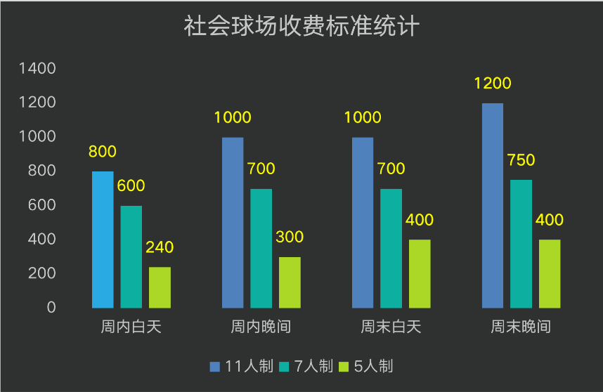 从表中可以看出,在西安一块11人制球场的租金大约为800-1200,7人制约为600-750,而踢一场5人制小场则需要240-400元。以最为常见、选择率最高的7人制场地为例,假如场地租金为700元,两队共有20名球员参加,将这一价格在两队范围内平分,可以看到在西安踢一场球大概需要花费35元左右。