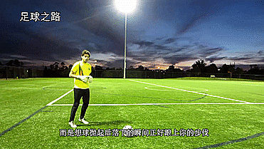 球抛起后落下的瞬间正好跟上你的步伐,踢球腿抬起恰好将球踢出;
