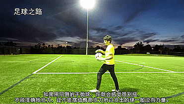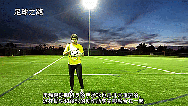 这样抛球和踢球的动作能够完美融合在一起,可以准确地将球穿过身体抛向踢球脚,踢球脚也能发上力。