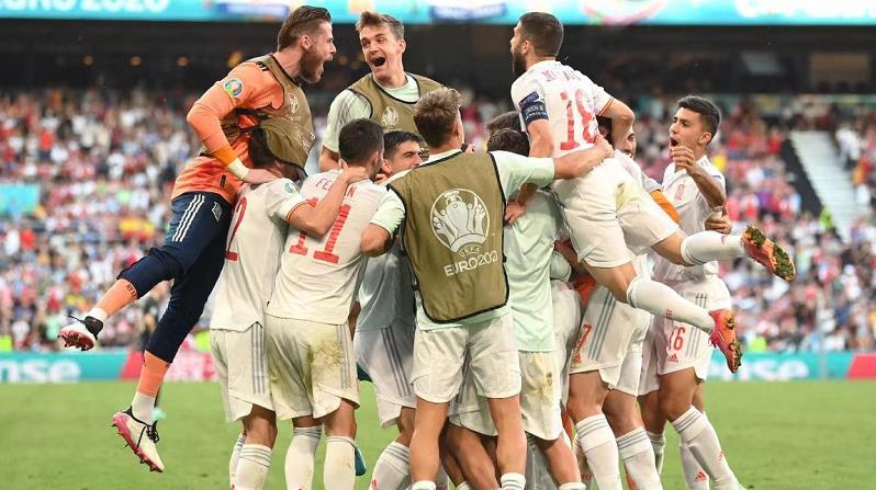 当地时间6月28日,2021年欧洲杯足球赛八分之一决赛一场较量在丹麦哥本哈根举行,由西班牙队对阵克罗地亚队。上半场比赛西班牙门将西蒙接佩德里回传失误自摆乌龙,克罗地亚队取得领先,随后萨拉维亚破门扳平比分,两队以1:1进入下半场比赛的争夺。下半场比赛阿兹皮利奎塔和费兰·托雷斯各进一球,西班牙3:1领先克罗地亚,但克罗地亚队在比赛最后时刻连入两球,两队以3:3进入加时赛。