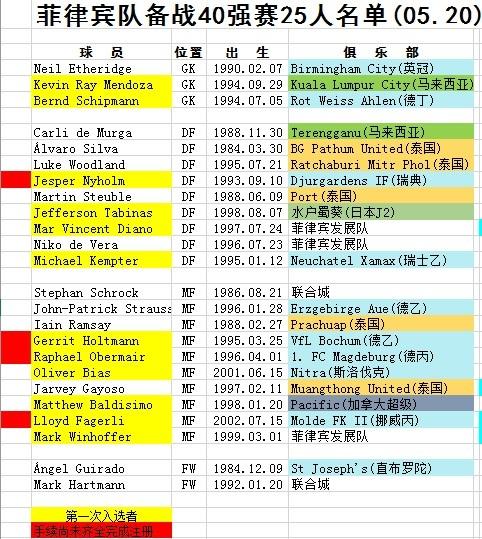 直播吧5月21日讯 菲律宾公布25人大名单,队长施罗克领衔,西班牙归化球员马拉尼昂不在列。