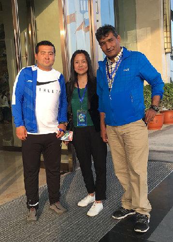 王红亮和天津足球教练管溶光(左)与爱徒卿淑云(中)合影