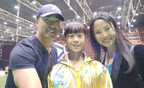 天津市八里台第一小学足球教练管溶光带着爱徒卿淑云来观赛。虽然卿淑云没能参加半决赛,但是她入选了“最佳阵容”,将代表北区赛队与南区赛队进行总决赛。