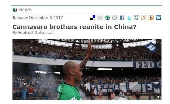 这则消息出自卡帅父亲帕斯夸里·卡纳瓦罗之口,老卡纳瓦罗在接受采访时证实,“明年他(小卡纳瓦罗)就37岁了,他必须思考退役之后应该做些什么。所以,他选择到他的哥哥身边工作,准备在中国开始一段新的旅程。”