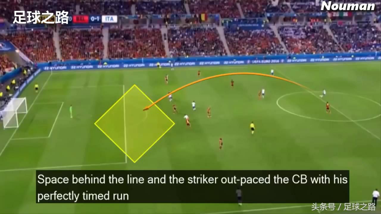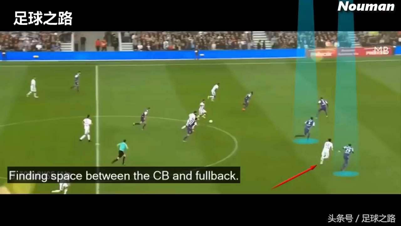 如果防守队员身后有空间,前锋就可以利用这个空间,两个方法,要么速度比对手快,要么脑子比对手快。