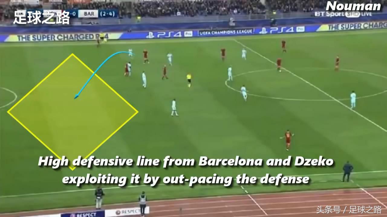 巴萨的防线压的非常靠前,就像前边所说,身后留下了大片空间可供前锋利用。