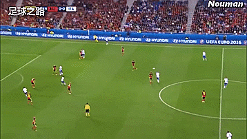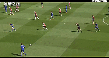 我们看下面这个跑位,前锋跑位远离持球队友,并慢慢离开对手的视线,让后卫认为他不在威胁区域,从而丧失对他的盯防。