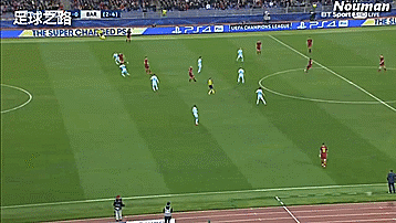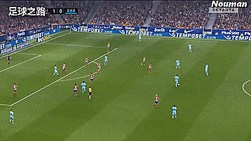 我们看下面这个例子,苏亚雷斯将自己置于防守队员盲侧,此刻防守队员已完全被持球队员所吸引。