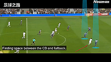 随后再延迟跑位,突然快速前插,显然中后卫一愣没有意识到前锋的举动,这就是远离持球队员的作用。