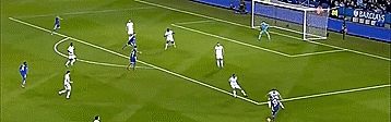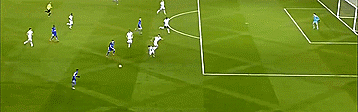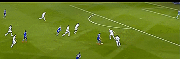 下面我们先看第一个例子(脑子比对手快),现在防守队员身后有空间,卡瓦尼想到切尔西后卫前头,通过曲线跑位有效占据这块空间。