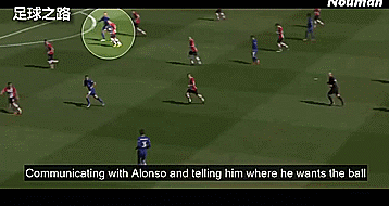 我们看切尔西在和阿隆索沟通,告诉他想接球的地点。