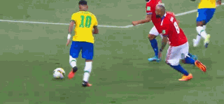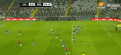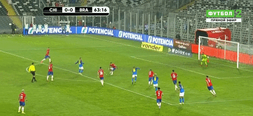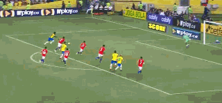 比赛第26分钟,巴西队反击制造良机,加布里埃尔后场开始带球,一路狂奔半场为内马尔送出保姆助攻,但后者面对门将的射门直接打上看台,有失水准。第31分钟,智利队前场获得位置不错任意球,比达尔主罚直接轰门,被维瓦尔顿扑出,随后智利队的补射再次被维瓦尔顿扑出。