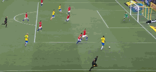 随后,进球后的巴西继续发起猛攻,第72分钟,巴西队在智利禁区展开围攻,但进攻队员都没能完成最后的射门,第82分钟,内马尔带球被放倒,普尔加也是吃到一张黄牌。