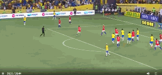 比赛第37分钟,维尼修斯和内马尔又一次打出配合,可惜内马尔的射门还是没能过布拉沃的十指关,比分还是0-0。