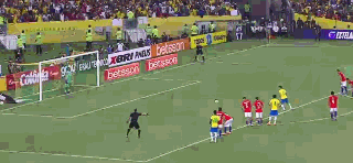 比赛第41分钟,内马尔左路突破,伊斯拉将其铲倒,裁判判罚点球,内马尔亲自操刀主罚命中,巴西1-0领先。