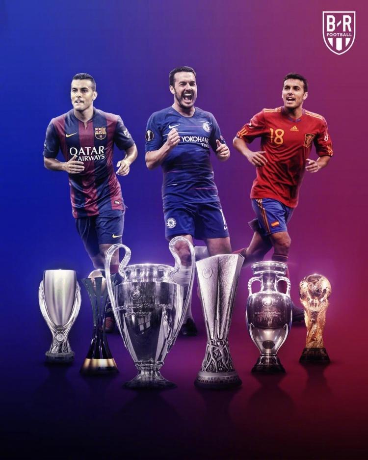 作为史上唯一一个同时赢得过世界杯冠军+欧洲杯冠军+欧冠冠军+欧联杯冠军的球员,佩德罗的职业生涯自带赢家光环,赢得过26座冠军奖杯。08-09赛季,21岁的佩德罗开启一线队生涯,很快,他就创造了一项神迹。