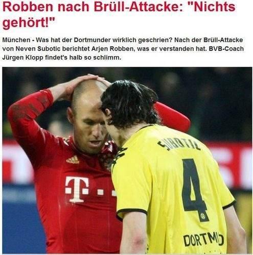 面对拜仁球霸罗本时毫不畏惧,怒吼罗本,罗本吓得不敢声张