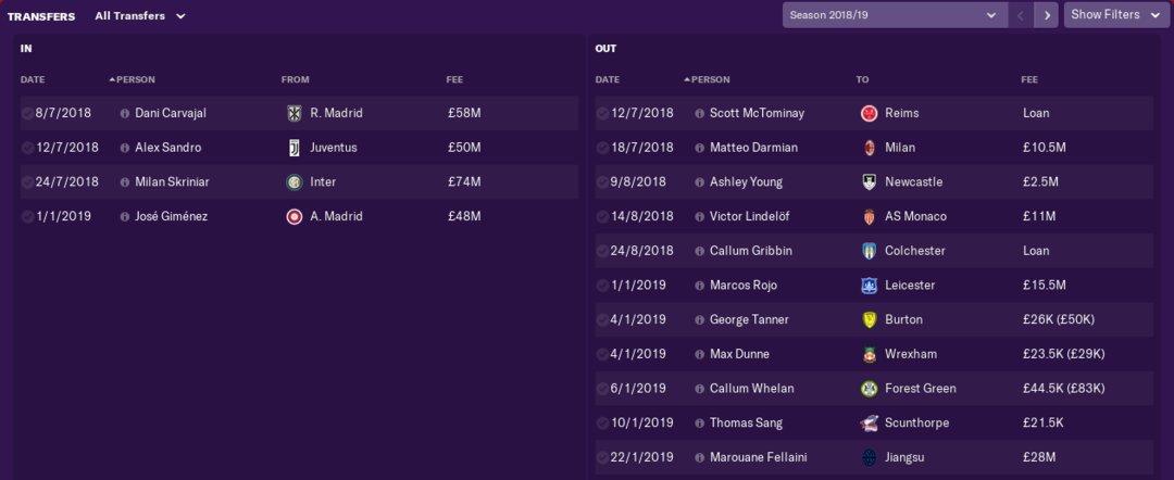 然后开始买买买:买入新球员,组建理想阵容。例如,如果是执教英国豪门曼联,后防线是要大换血才行的,不然跟现实一样几乎每场都得靠门将的神发挥。