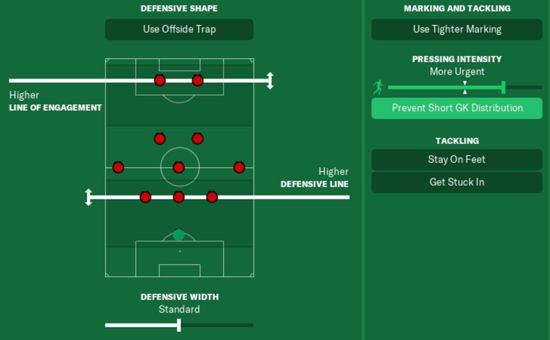 因此,首先确定的是,需要用可以前顶的三中卫解决后场防守和层次,把他推起到靠前位置。其次是各位置的人员配搭,三中卫天然中路人多,边路人少,需要摇摆位置的角色来兼顾边路和中路。具体操作中,在横向上,要有能打边后卫的左脚和右脚中卫来横移填补同侧翼卫,能打边中场的中场中路球员,能打边锋的前锋;在纵向上,三中卫里在拖后位置增加保护后要从防线顶出一个人来增加中路层次,攻要处理球,守要纵向争夺空间;防守后腰也要有下沉到中路帮助防守的能力等等。