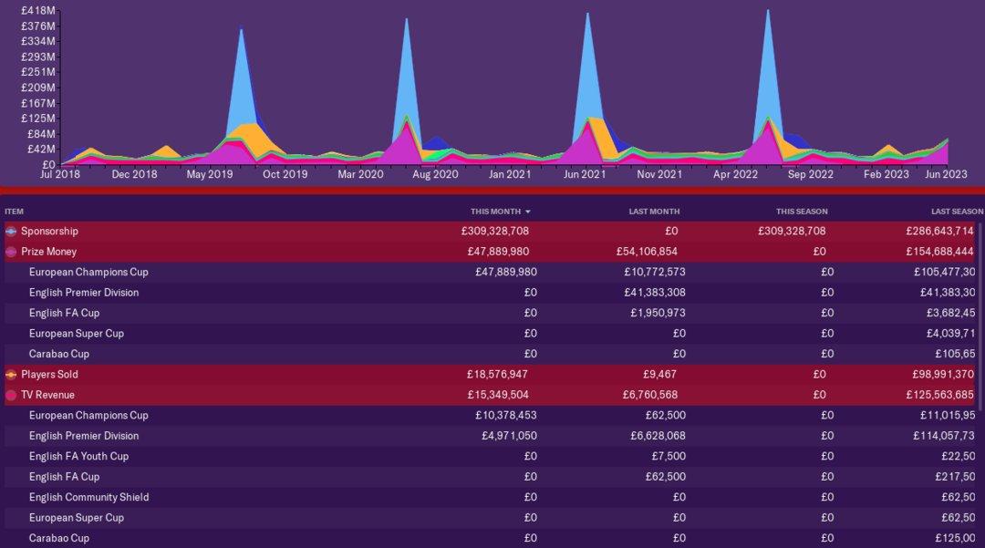 足球经理系列游戏也沿用了 manager 制度,主教练开始游戏后,首先要了解球队的财政情况,跟董事会拿预算:转会预算、职员薪金预算、球员薪金预算。