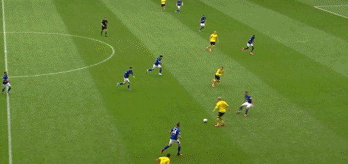 沉寂了太久的德甲赛场,似乎需要一记惊天的世界波亦或是一次精妙的手术刀配合来打开尘封已久的进球之门,然而,不解风情的哈兰德却选择用最简单的方法打入自己本赛季的第41个进球—队友的横传球喂饼恰到好处,他只需要用脚轻轻一搓,沙尔克门将舒伯特没有任何几乎。然而,如果你把这个球多看几遍,你一定会发现哈兰德的可怕之处,他精确的跑动让自己甩开了穷追不舍的防守队员,自己却没有越位。高速奔跑后起脚的一瞬间张开的脚踝让球的弧度完美绕开了守门员的扑救范围。意识,节奏,角度的融合造就了这一个看似再正常不过的进球。