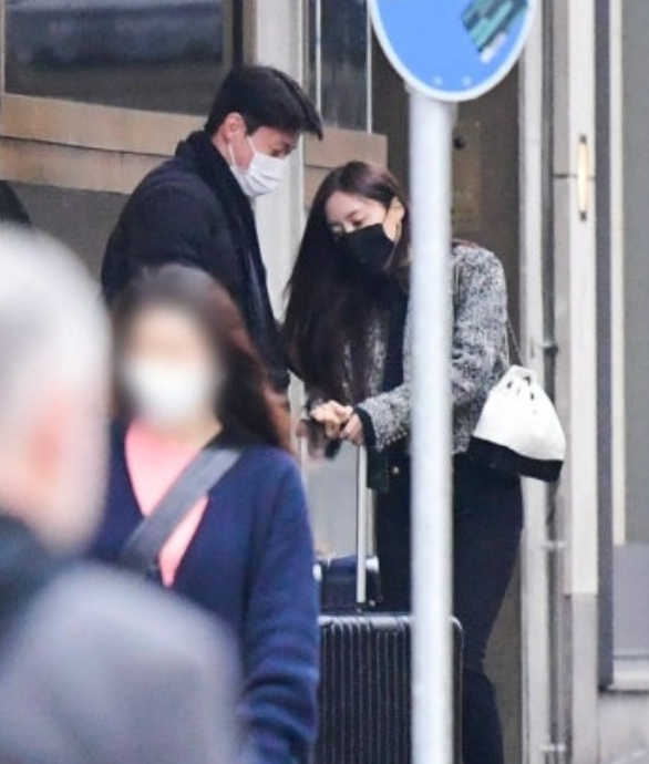 从照片中可以看到,孝敏和黄义助当天都穿着暗色系服装,颇有点情侣装的意思,两人的互动虽然没有特别亲密的行为,但气氛十分默契熟稔,孝敏和黄义助的姿态也很放松,谁看了就会认为他们是一对小情侣。