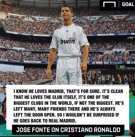 丰特,葡萄牙前国脚,曾在大连一方效力。如今,他谈到C罗时,直言如果葡萄牙巨星回归皇马,他不会感到意外。事实上,皇马和C罗双方有3大理由在今夏再次牵手!