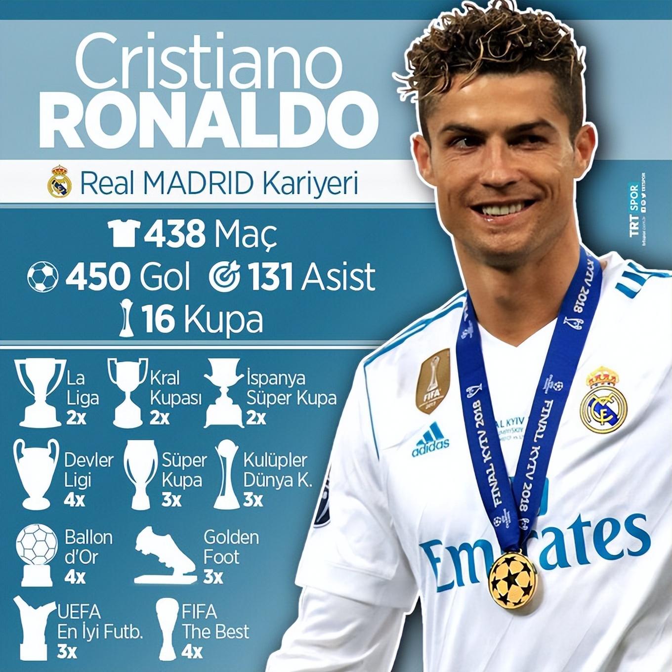 C罗在皇马效力9年,期间帮助皇马获得2次西甲冠军和4次欧冠冠军,在皇马生涯,C罗拿到了4座金球奖,双方的合作十分愉快,C罗帮助了皇马,而皇马成就了C罗。意外的是,2018年夏天,C罗和皇马分道扬镳,葡萄牙巨星转投尤文。