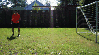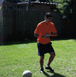 下面开始尝试练习。在10码远处设上一个目标,球门或者墙之类的物体。慢慢地开始练习,体会技巧,直到你找到大力射门的感觉。练习中不要着急,我们是在练习技术,而不是在练习肌肉。