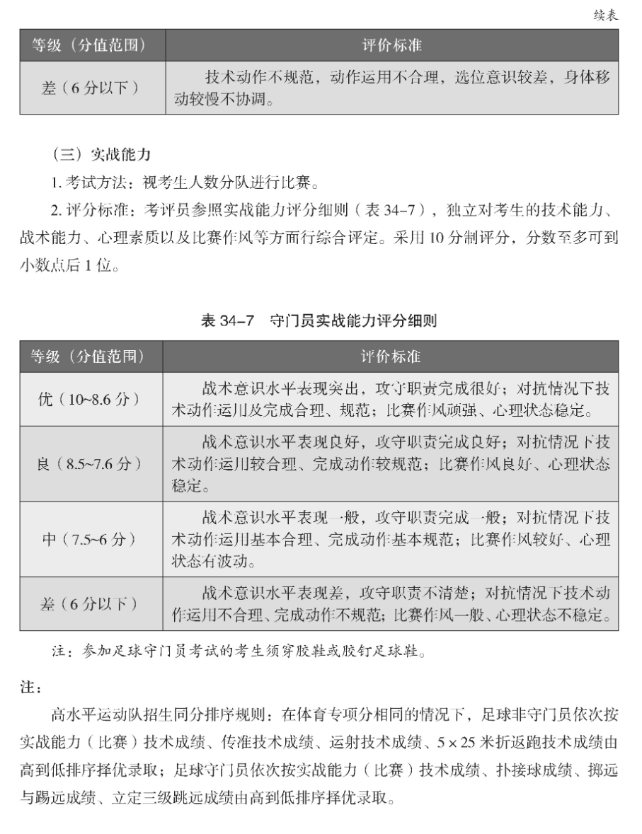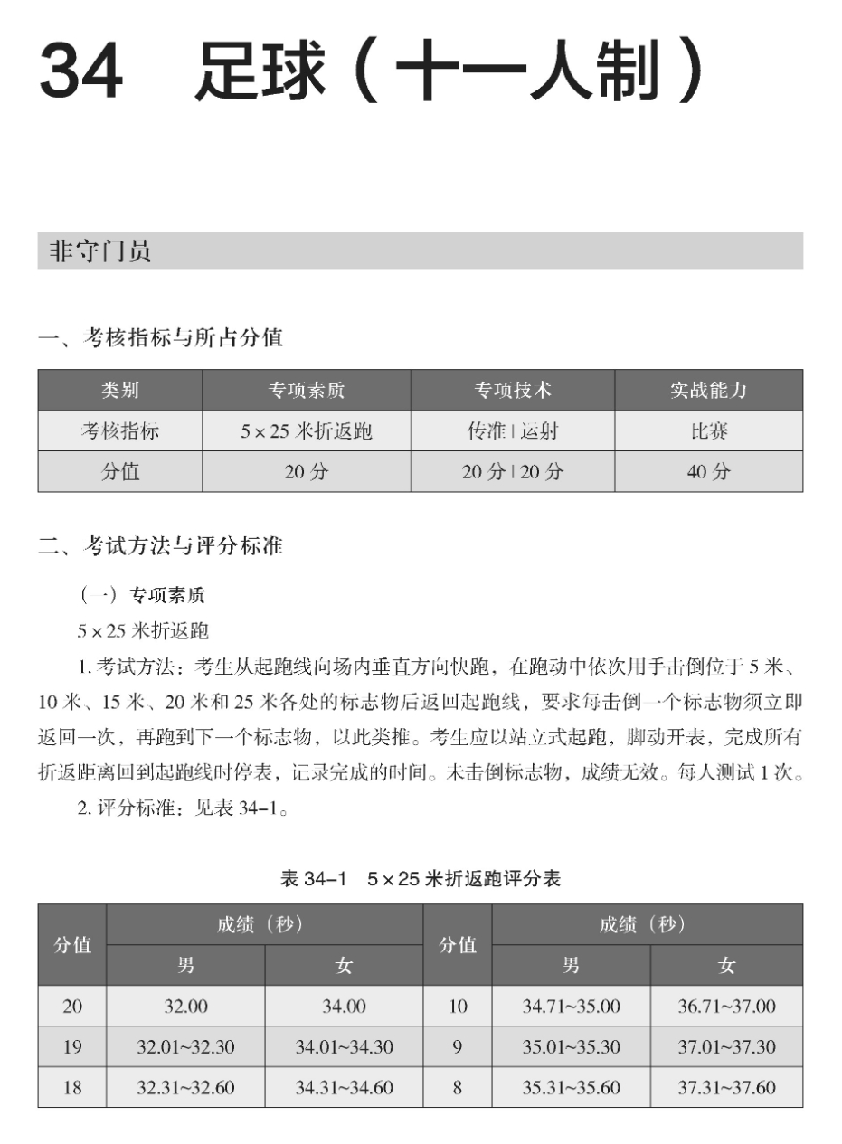 足球(十一人制)专项考试方法与评分标准