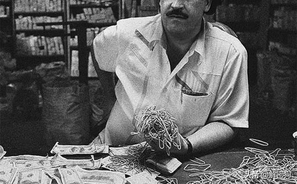 手里拿着用来捆钱的橡皮筋的巴勃罗