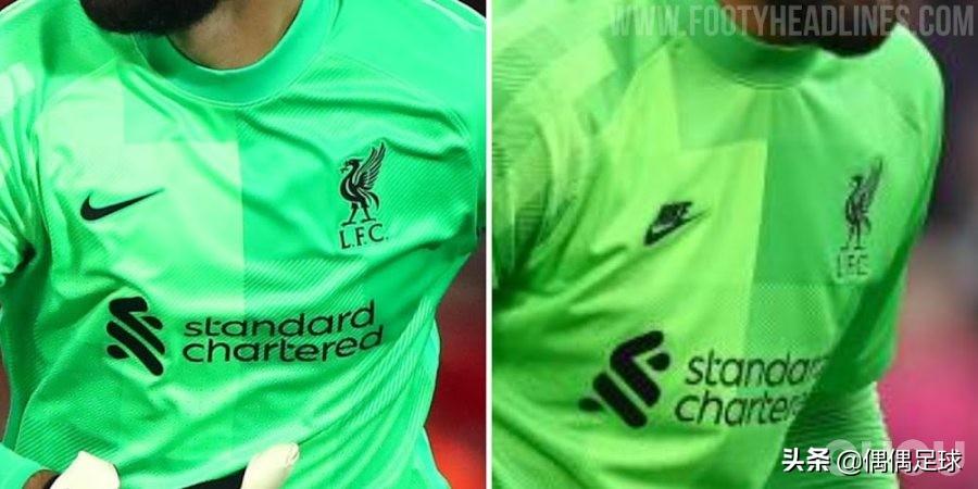 当利物浦穿着标准时尚的Swoosh标志的主场或客场球衣时,阿利松曾经/现在穿着与时尚的Swoosh标志相匹配的守门员球衣。