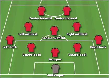 在现代足球比赛中,大部分球队使用双中卫阵型, 双中卫站位于守门员之前。