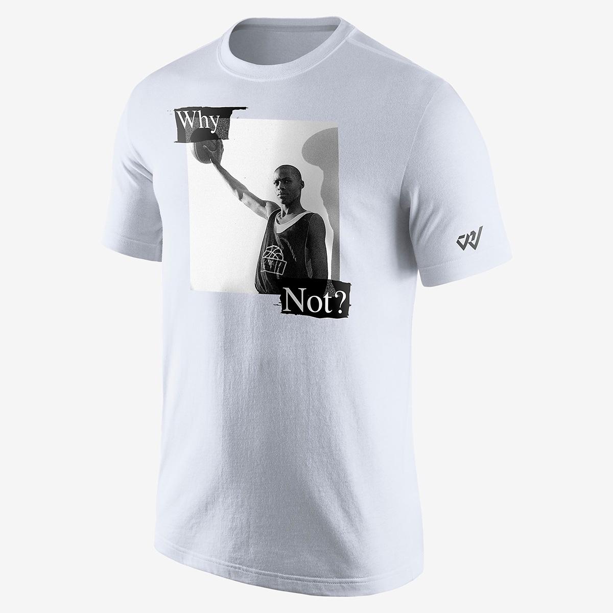 眼前这款 JORDAN WESTBROOK "WHY NOT 0?” Tee 则以这一主题为灵感打造,选用了威少年少时的写实照片呈现于胸前,Why Not 字样和袖标都是威少个人专属味道浓厚的元素。