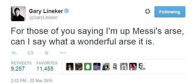 ①那些说我就知道贴梅西屁股的人,我要说的是,那是多么美妙的屁股啊!②他让阿圭罗与苏亚雷斯这样的世界级球员显得无比平庸。