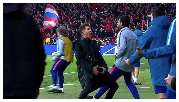 前段时间对马竞的比赛,梅西替补,马竞进球后西蒙尼庆祝,突然又停下了。