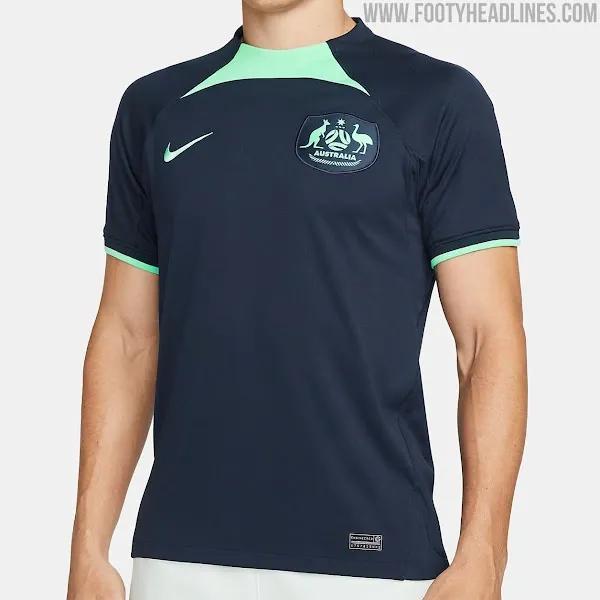 客场球衣看到耐克使用他们在其他国家的球衣中看到的模板,但亮绿色应该是为了向澳大利亚在水中发现的植物和生物致敬。