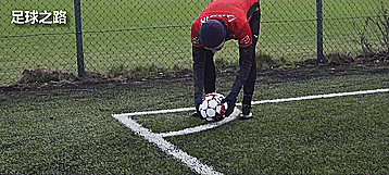 如何摆放足球也是一门学问,如果我们要发内旋球,我们可以将球放在角球弧的中间,外旋球就更接近底线一些,确保球不要离禁区太远。