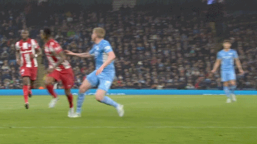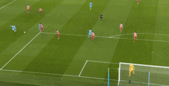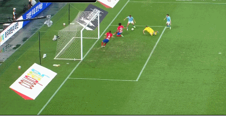 第55分钟,曼城获得禁区弧顶位置的任意球,德布劳内直接打门,奥布拉克向左倒地先用手挡出皮球,然后立即出脚将球踢出禁区。