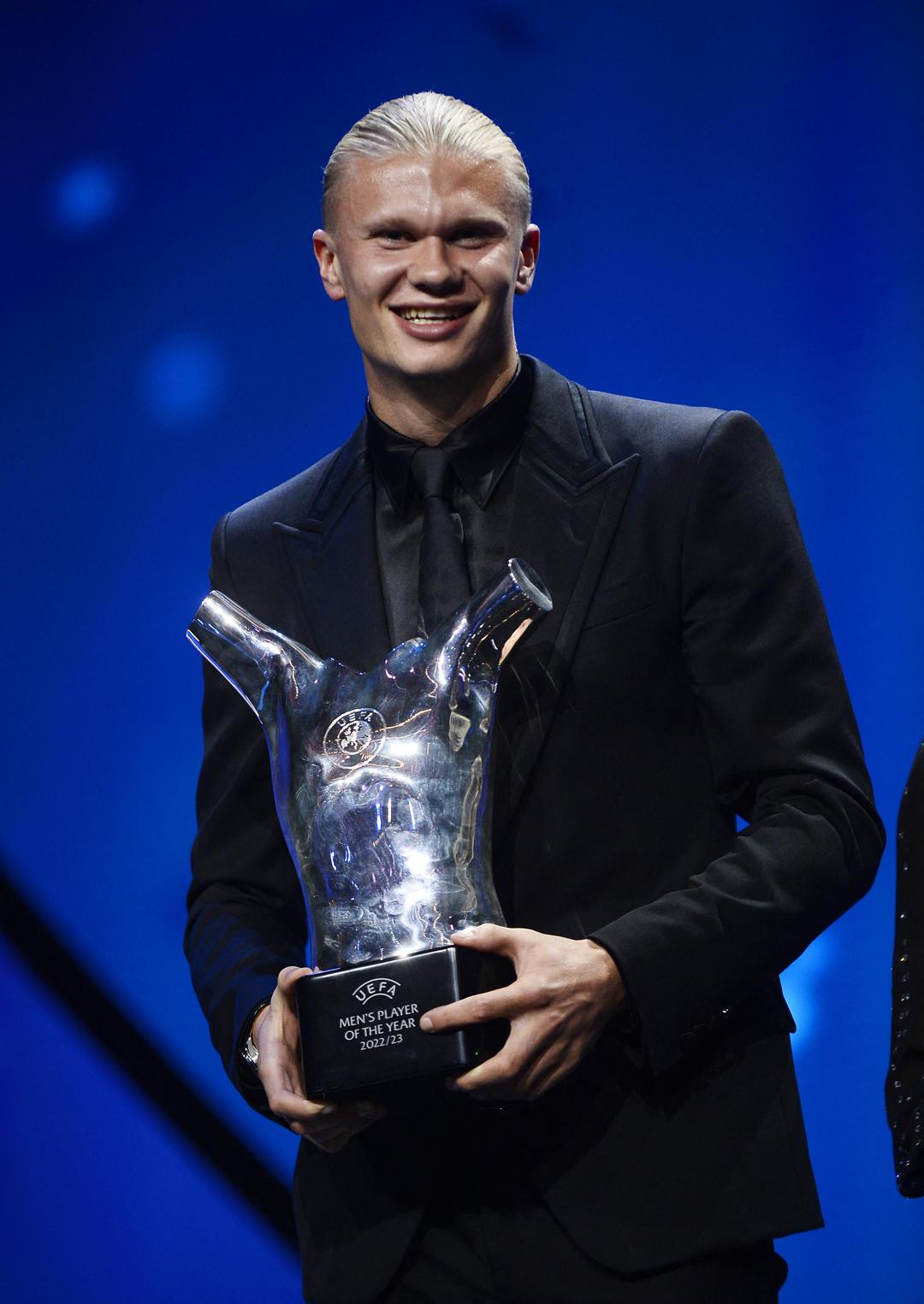 哈兰德领取欧足联年度最佳球员奖杯 图据IC photo