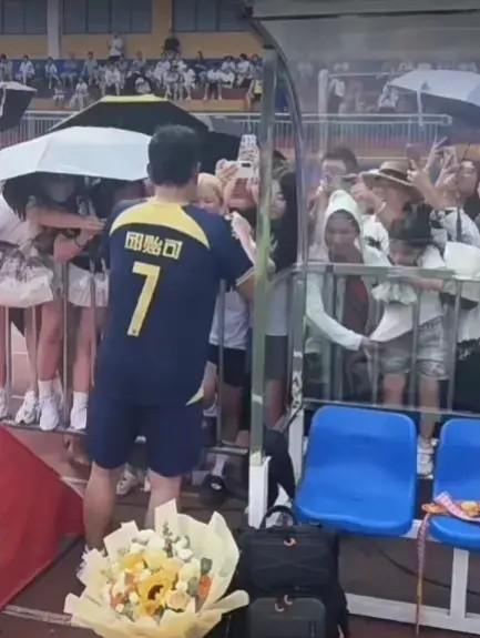 比赽结束后,现场气氛热烈非凡。球迷们争相与邱贻可、方博合影留念。有意思的是,邱导还抽空给粉丝们签了名。这操作,简直是把乒乓球明星见面会搬到了足球场上啊!
