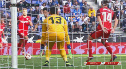 西甲联赛第28轮,西班牙人主场面对塞维利亚,下半场,本耶德尔的点球为客队首开纪录。