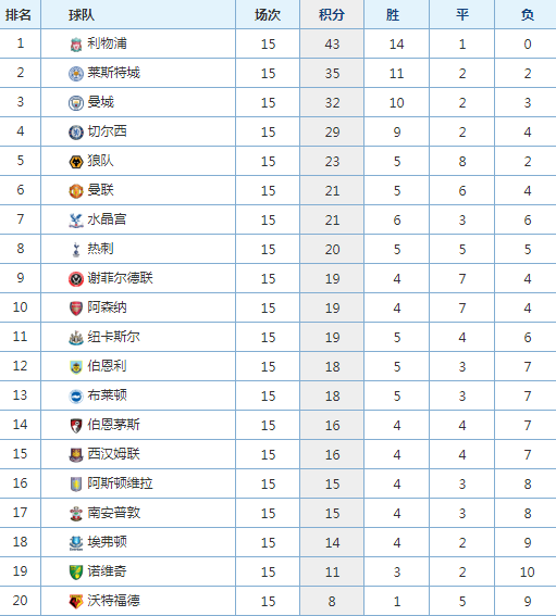 英超联赛第16轮赛程:曼城vs曼联(CCTV5直播)